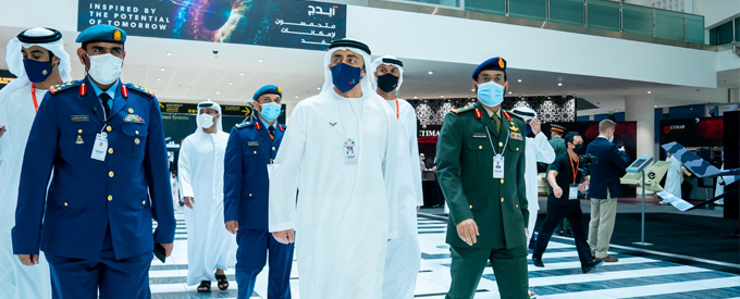 Sheikh Abdullah praised the participation of some 60 countries in IDEX 2021, to exchange knowledge and expertise and discover the latest technologies in defence industries.